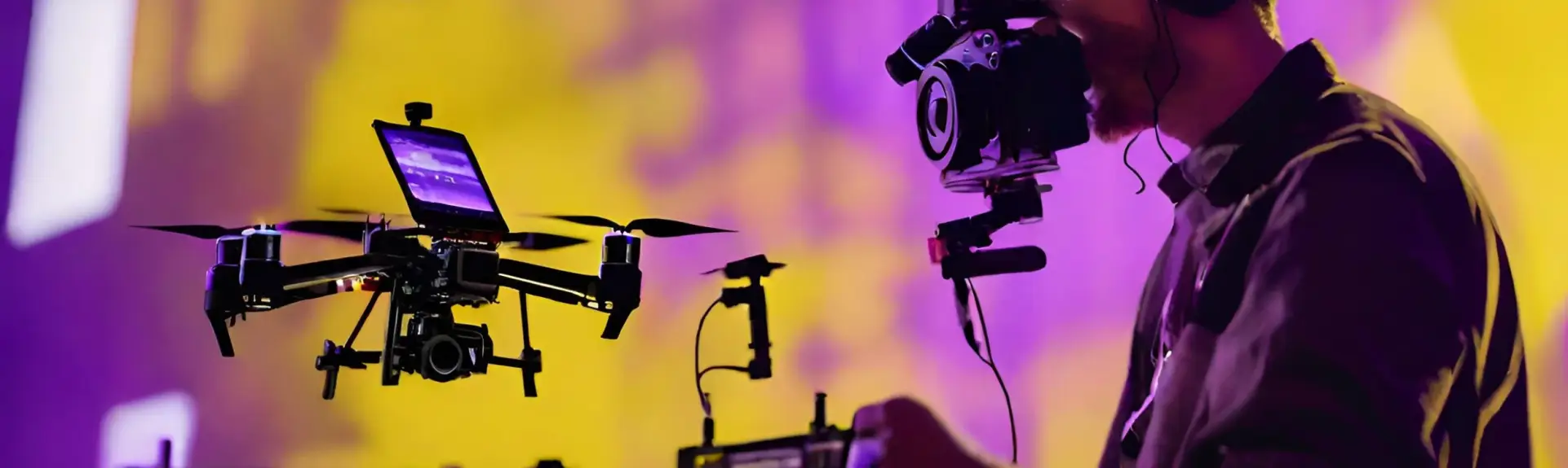 Steadycam, drone, iluminación y sonido, equipo de técnicos, operadores, realizadores, dirección de cine y fotografía. Grabación de todo tipo de videoclips, conciertos, ferias, videos promocionales, congresos, entrevistas y cualquier evento cultural.